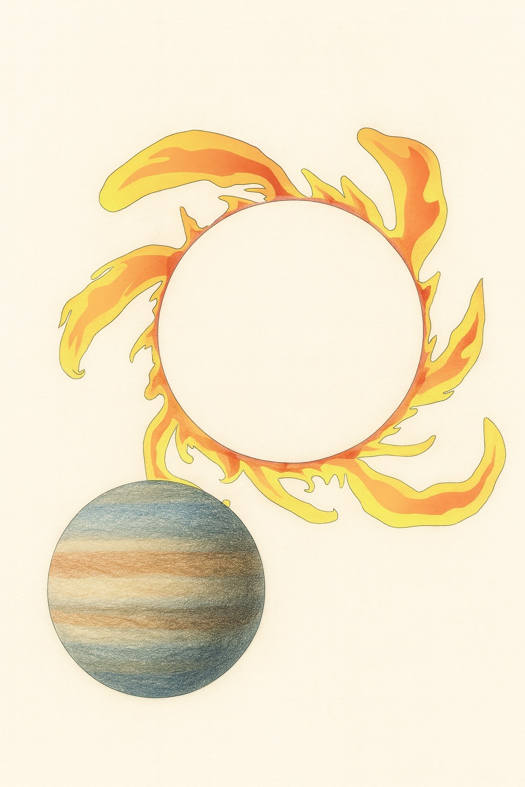 I was born over 4.5 billion years ago ⏳, from the same swirling clouds of dust 🌫️ and gas 💨 as all my planet siblings. Some of the planets—Mercury, Venus, Earth, and Mars—ended up as rocky planets 🪨, with solid ground and tall mountains. But not me! I’m a gas giant, made mostly of two super-light gases called hydrogen and helium 🎈. You know helium—it’s what makes party balloons float up to the ceiling and sometimes float away and get lost in the layers of the artmosphere. 🎈🎉. And hydrogen is even lighter! That’s why if you tried to land on me, you wouldn’t find any ground—you’d just sink into my swirling clouds ☁️ like diving into an endless sky and end up nowhere.