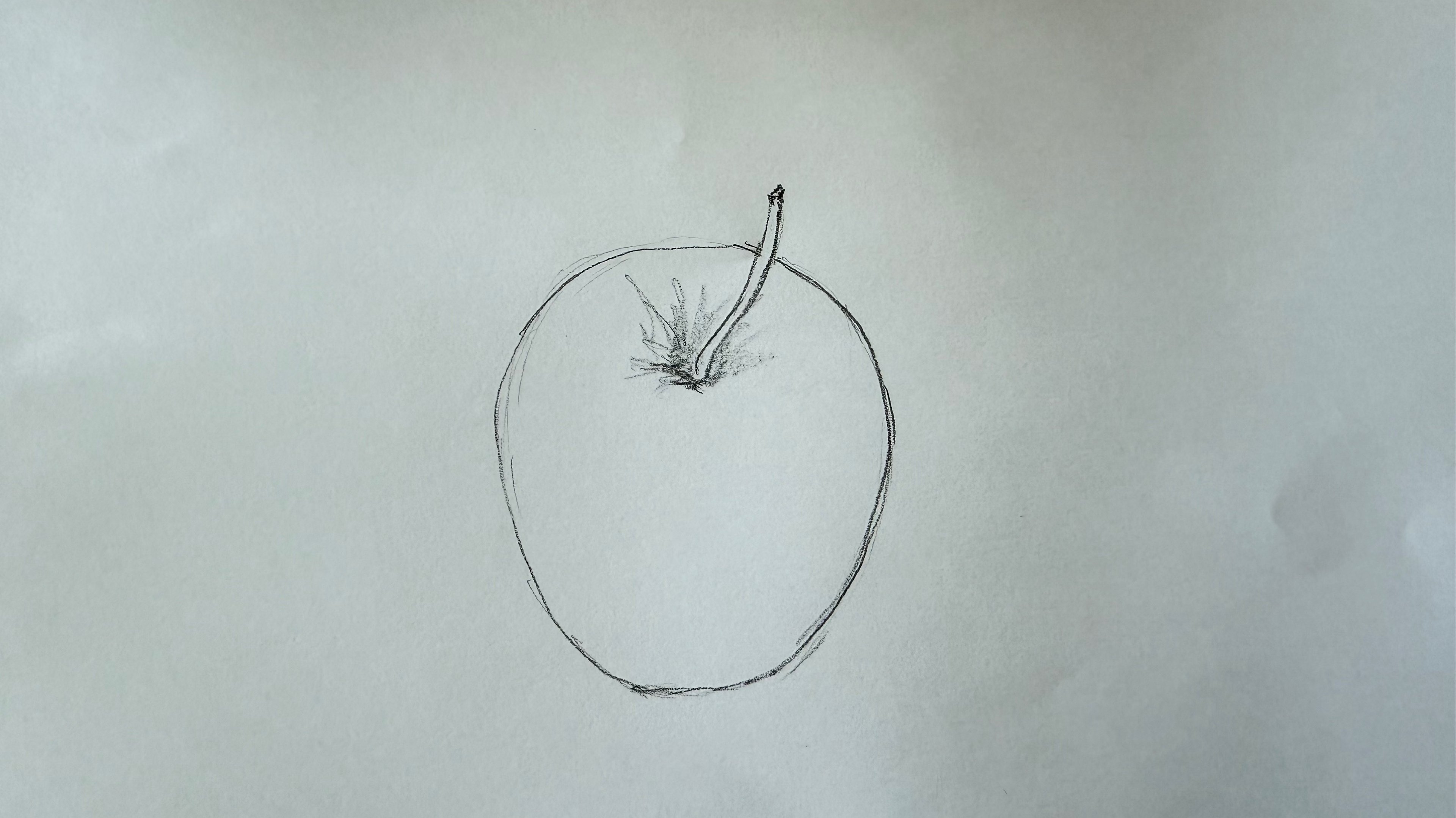 Wait a minute… Red and green? Like all the Christmas decorations. Yes! These two colors are opposites, but guess what? They actually work beautifully together. In fact, we can find complementary color pairs in nature— leaves , flowers, and amphibians even some birds. 🎨 Today, we’re going to try an artist’s experiment with this idea!Let’s start by drawing the outline of our apple with a pencil.