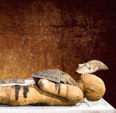 Look closely at this photo of a mummy... 🏺👁️ What do you notice?Can you imagine why people long ago would take so much care to preserve a body like this? In ancient Egypt, people believed in an afterlife—a place where the soul would continue to exist after death. To prepare for this journey, they mummified bodies, wrapping them carefully in layers of linen and resin to preserve them for eternity. It was their way of protecting a person’s soul and ensuring they were ready to meet the gods. 🌌✨