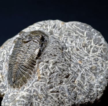 My name is Trilobite 👏 Tri 👏 lo 👏 bite 👏—a name from Greek, meaning “three-lobed”, because my body was divided into three parts: a head, a middle, and a tail. I had many legs and eyes like crystal domes. Some of my cousins swam in open water, while others, like me, crawled along the soft seabed, digging, hunting, and hiding.