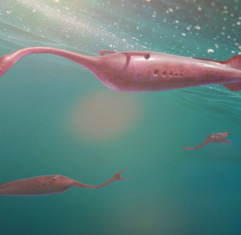 By the time you reach the Carboniferous Period—also called the Age of Amphibians—the land is steamy and green. Giant dragonflies flap above, and forests full of ferns and mosses stretch across the swamps. 🐸🌿 But in the shallow, shadowy seas, something very strange is swimming…