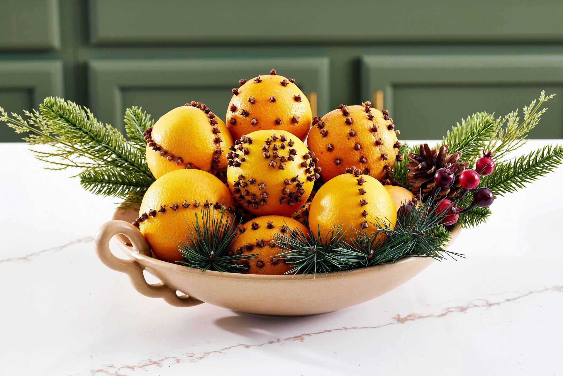 How: Press cloves into an orange, making fun patterns. You can also add other spices like cinnamon sticks or star anise to your design. Hang the pomander in your home for a lovely holiday scent.