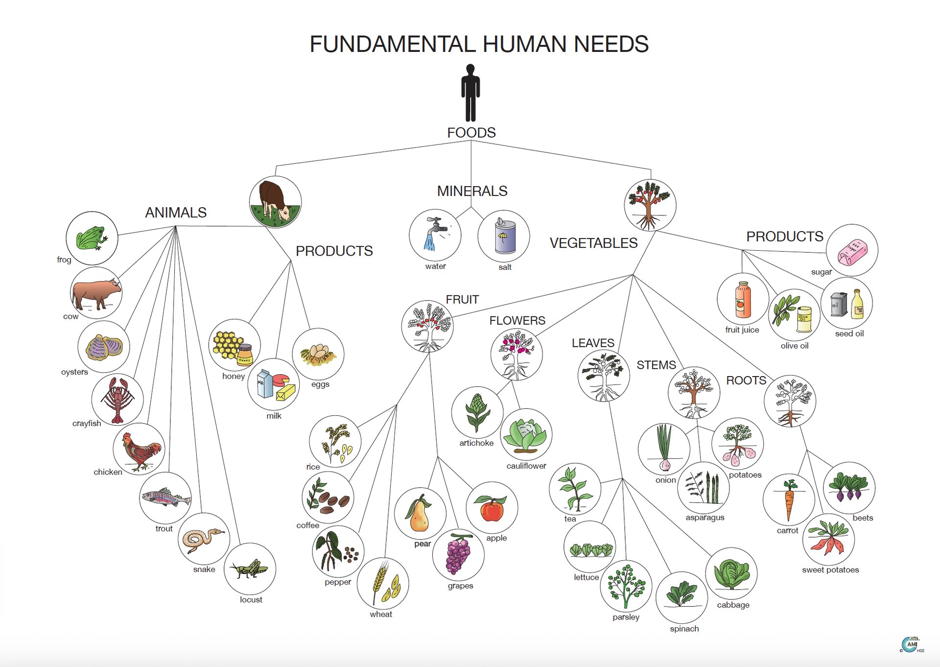 👣 We’ve taken a deep, delicious journey down just one branch of the Fundamental Needs Chart—Food. 🥦🐄💧 From roots and stems, to eggs and honey, we saw how people across time and cultures met their need for food in wonderfully different ways. 🍽️🌍