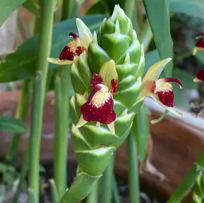 Above ground, ginger plants look like other plants around, green and bushy with beautiful flowers that attract bees and other pollinators. But ginger has a sneaky way of spreading which people did't know. It grows baby ginger plants straight from its undreground stem : the rhizome, as if the ginger plant says "I can do it by myself". 🌱✨ Imagine starting with just one ginger plant in a pot. You water it, watch it grow, and then—surprise!—another little shoot pops up next to it, even though you didn’t plant any seeds! 🌱 Soon, you have two, three...and before you know it, your tiny ginger pot has blossomed into a whole mini ginger jungle! 🌿🌿 (Point out "eyes" on the ginger rhizome, which can grow into new shoots.)