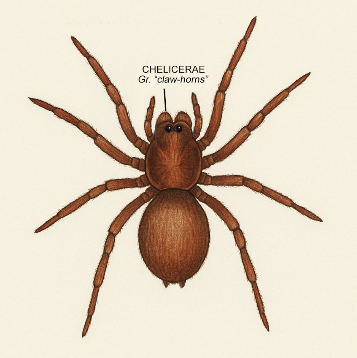 But all spiders are carnivores—meat eaters! They hunt insects, flies, beetles, even other spiders.With their fangs—called chelicerae (👏 che 👏 li 👏 ce 👏 rae👏)—they inject venom to stop their prey from escaping. The name comes from Greek words meaning “claw-horns,” perfectly shaped for grabbing and piercing. 🕷️ Since spiders don't have teeth like we do, they can’t chew, they drink their meal—like sipping a smoothie. 🧃😄