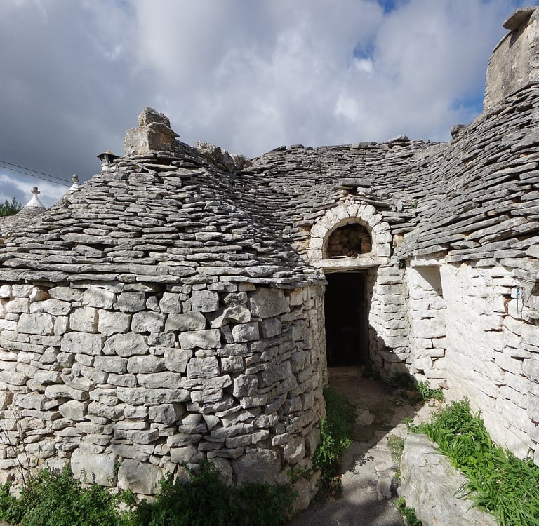 When the inspectors left, the villagers would rebuild their homes again by hand—quietly, patiently, stone by stone. This style of building was called dry stone construction, and their little dome-roofed homes became known as Trulli. The word “Trullo” (singular) comes from the Greek word troulos, which means dome—referring to the round or conical shape of the roof.