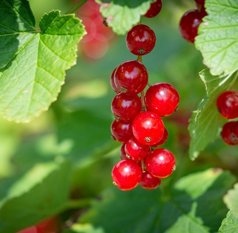 I am a small, red fruit that grows in clusters, hanging from thorny bushes. My smooth, shiny skin glows in the autumn sun, making me easy to spot among the fading green leaves. I’m often found along hedgerows and roadsides, where birds love to snack on me. Humans sometimes collect me to make tangy jams or syrups. My long, thin stems give me the appearance of little red pearls on strings.