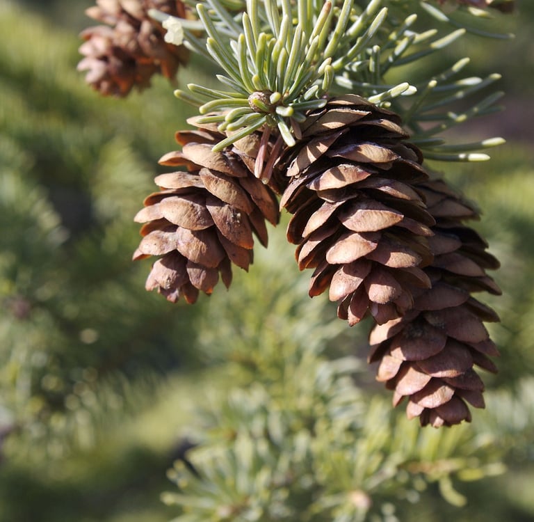 I am a hard, woody structure made of overlapping scales, and I fall from tall evergreen trees in autumn. My shape is often like a small, pointed egg, and my brown scales open up to release seeds into the wind. You can find me lying on the forest floor beneath trees with needle-like leaves. Squirrels and birds love to collect my seeds, and humans sometimes use me for crafts and decorations.