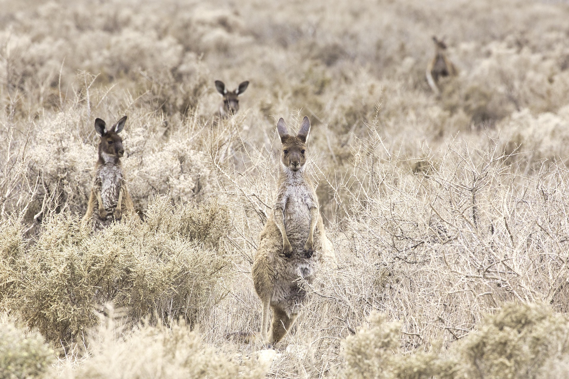Can you spot who’s hiding? A mob of kangaroos is camouflaged among the dry bushes! Their fur matches the dusty, golden color of their environment, making it nearly impossible for predators like dingoes 🐕🦺, eagles 🦅 to notice them. These clever hoppers don’t just rely on their speed to escape danger—they use their natural camouflage to blend into the landscape.
