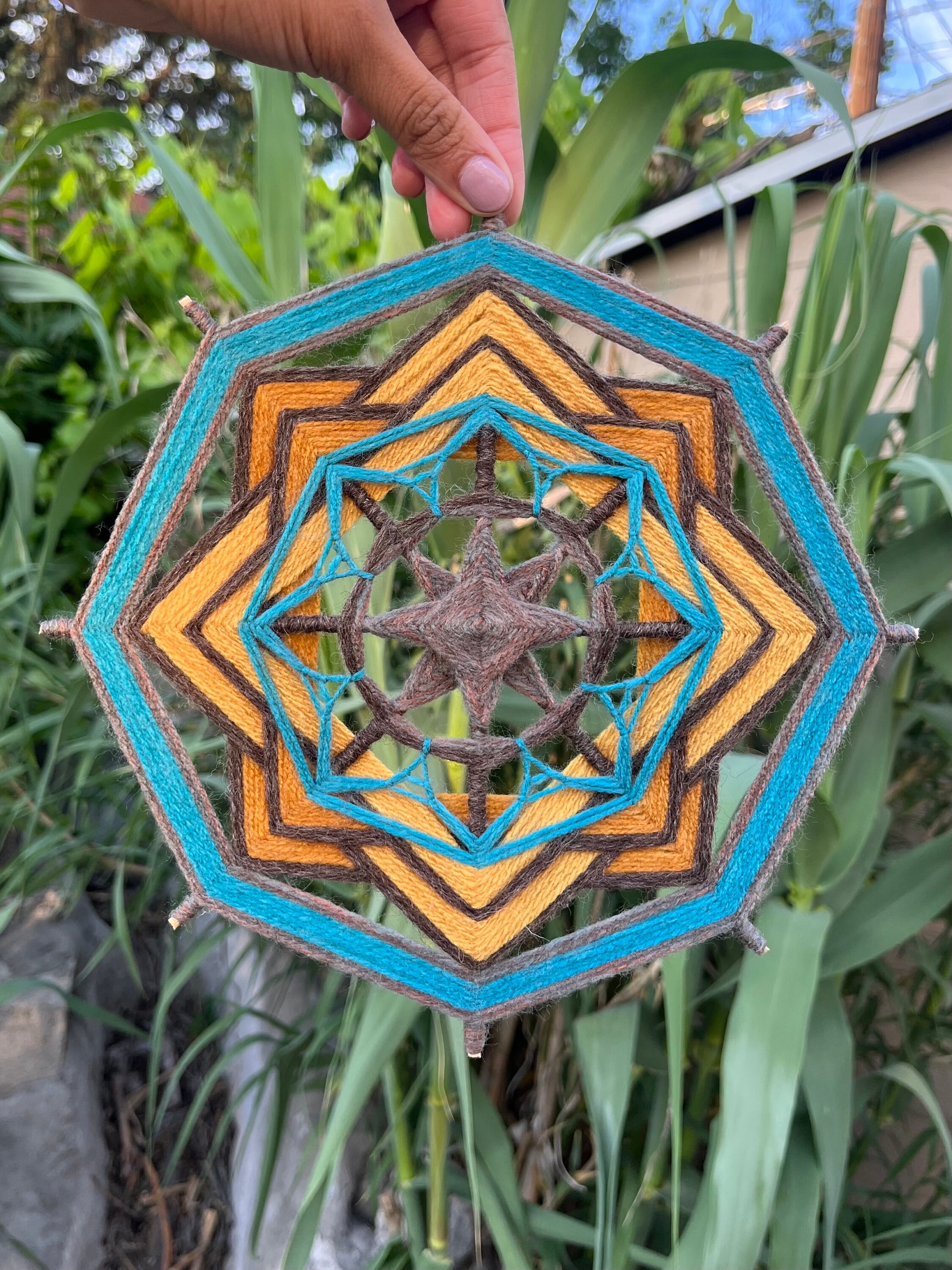 It looks simple: two sticks tied together in the shape of a cross. Bright yarn is wrapped around and around the center, layer by layer, color by color. Red like fire. 🔴Blue like rivers. 🔵Yellow like corn. 🟡Green like the mountains. 🟢 The finished creation looks like a woven diamond. But it’s not just decoration— the center of the ojo represents the God's eye that watches over us, sees our journeys, and keeps us safe. 💫 The Huichol people believe it holds blessing, and protection.