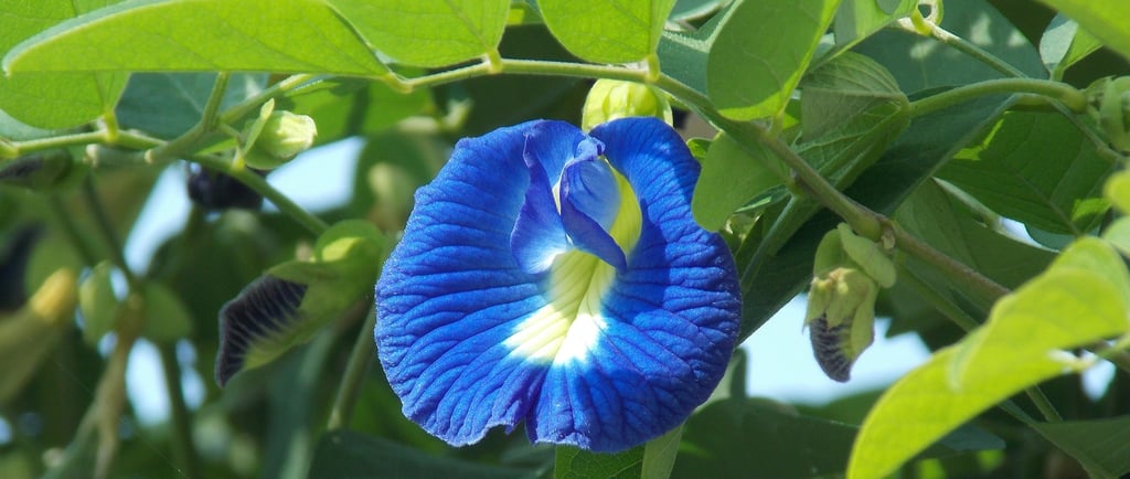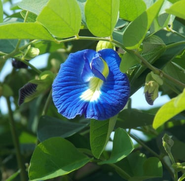 This flower grows like a delicate vine, stretching toward the sun with bright blue petals shaped like the wings of a butterfly. That’s how it got its name: Butterfly Pea—from the shape of its bloom, not because butterflies drink it or peas grow from it! 🦋🌸