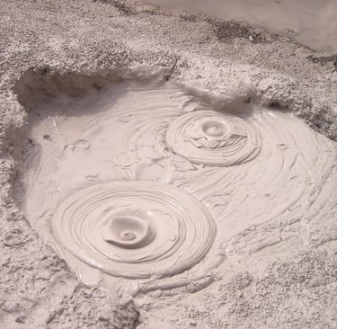Scientists also study the gases and mud to learn about the Earth’s deep, hidden layers, and thanks to them we know that not all mud volcanoes are made for swimming! 🌋⚠️ Some bubble up gases like methane and carbon dioxide that can be dangerous to breathe if you’re too close. 💨😯 And in places like Yellowstone National Park in North America, the bubbling mud pots can be boiling hot—hot enough to cook an egg! Simply because the bubbling mud isn’t from gases trapped under cool layers—but from heat rising from deep magma chambers! 🍳♨️🫧