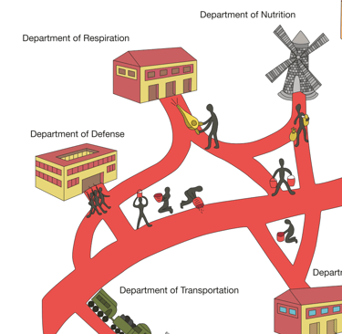 How: Children can draw an outline of their “Body Nation” with different “regions” ( organs or departments) labeled.