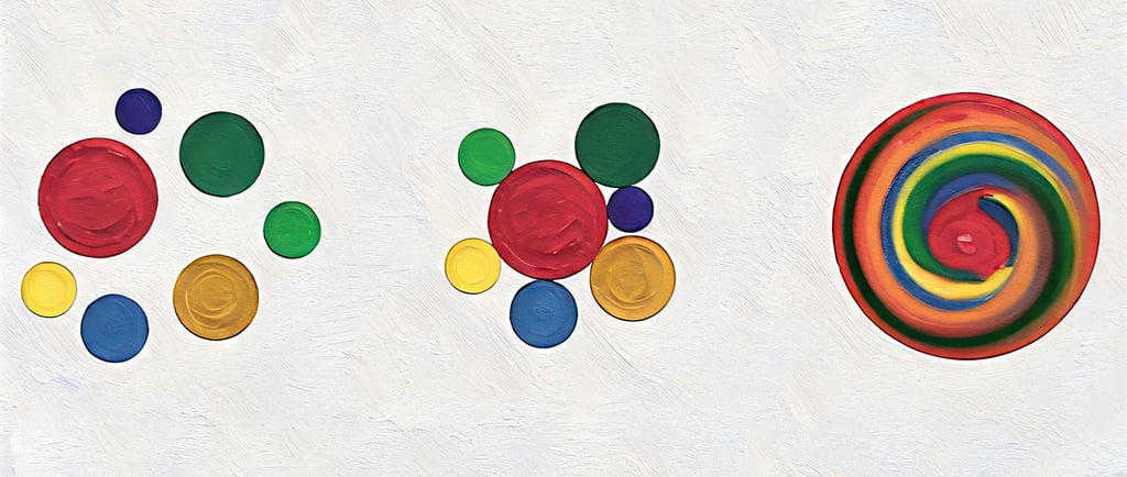 In the Horde Migration Chart H08, colorful circles on the left represent smaller groups that lived independently. In the middle, you can see how these smaller groups start moving toward a larger group, perhaps for protection or because the larger group (in red) had a stronger army. The final spiral on the right, made of different colors, shows how all these groups came together into one large, powerful force. This demonstrates how smaller communities merged with larger hordes, gaining strength and changing the lands they passed through.