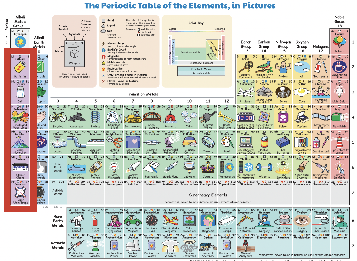 If we take a closer on the West side of the Periodic Kingdom we will find a column💜named Alkali Metals. The word “alkali” means “ashes”. 👏Al-ka-li 👏 Long ago, people discovered that these metals could create something special when mixed with water and ashes—a strong, soapy substance! 🧼✨The wildest citizens in this purple region of the kingdom are 🧂Sodium 👏So-di-um 👏 and Potassium 👏Po-ta-ssi-um👏 . Now sodium loves water so much that it fizzles and bubbles when the two meet! 🌊💥 While Potassium is even wilder—if it touches water, it can burst into flames from excitement ! 🔥🔥 Well, these metals aren’t always so wild. In fact, they are important for our body! ❤️ Sodium and Potassium are like messengers, helping your nerves send signals to your heart so it can keep beating. We can find potassium in bananas, and no, they don’t burst into flames when you peel them, right? 🍌😊