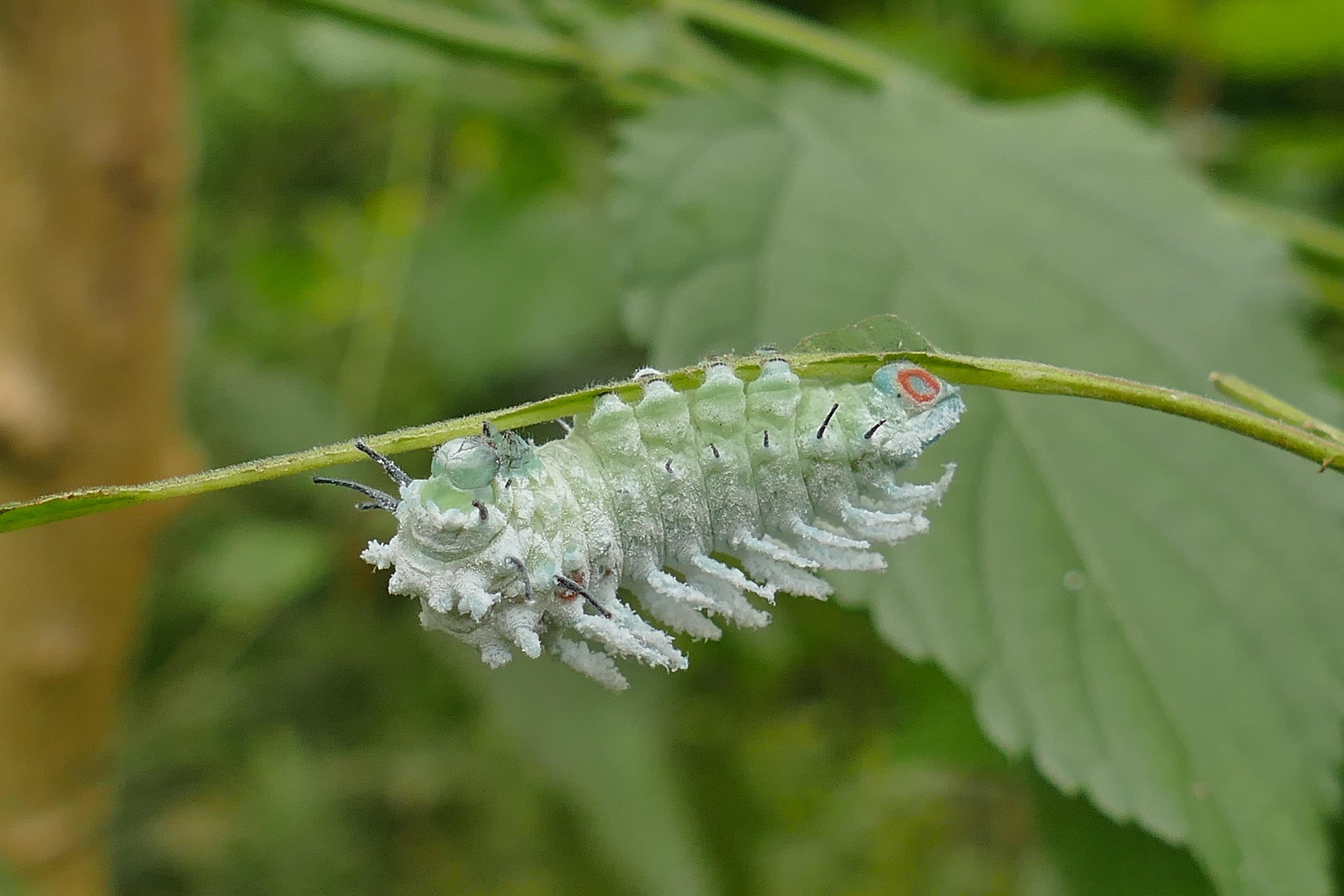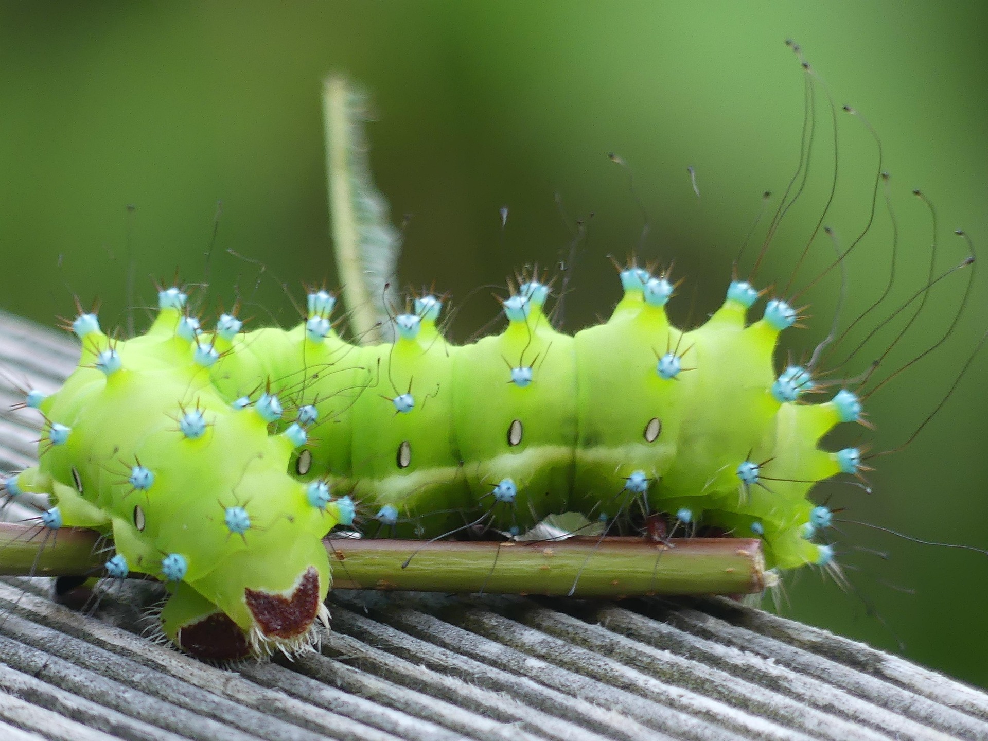 🌿 Just look at how many styles nature has designed for caterpillars! Some are dressed in soft, fuzzy coats—like they’re wearing tiny winter jackets. Image 1, Image 2, Image 3, Image 4 ❄️ Others look like cactus branches 🌵, covered in prickles to warn predators. Image 5 , Image 6 , Image 7 . Image 8, Image 9. Some are sleek and smooth, shiny like tiny green jewels 💎 Image 8, Image 9 , Image 10, Image 11. while others pretend to be sticks or leaves, blending perfectly with the plants around them. And then there are the giants among caterpillars! 💚 Like the Cecropia Moth Caterpillar , North America’s largest native moth. This bright green caterpillar is covered in spiky tubercles—those little bumpy ‘spikes’—in bright shades of blue and orange, like nature’s jewelry. ✨ As it munches on leaves, it quietly prepares for its incredible transformation into a moth with huge, velvety wings decorated in earthy reds and browns. 🍃 Every caterpillar is a masterpiece of survival.