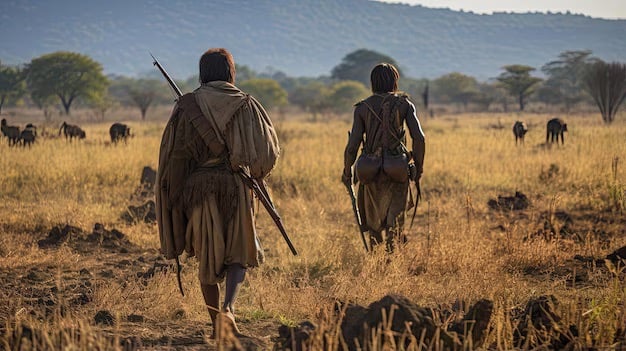One of the earliest forms of migration began with nomadic hunters—humans who followed the herds of animals across vast distances to survive. 🌍 These early humans lived a life of constant movement, always in search of food and water. They had no permanent home because their survival depended on the animals they hunted 🏹. Wherever the animals went, they followed.