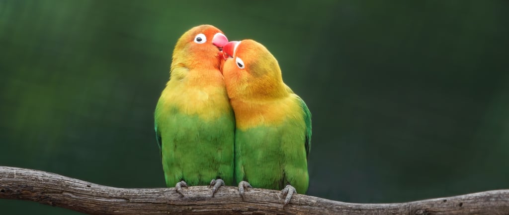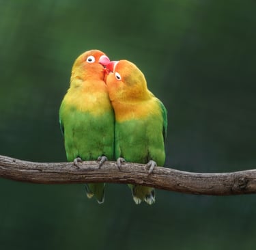 These cute colourful small parrots, usually 12–17 cm (5–7 inches) long, with bright feathers in shades of green, yellow, orange, and blue 🌈. Their name comes from their deep connection with their mates—once they find a partner, they stay together for life! They show their love by snuggling, feeding each other, and chirping sweetly.